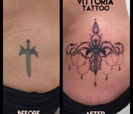 Chez VittoriaTattoo Shop Aubusson, je vous aide à donner une seconde vie à vos anciens tatouages grâce à l’art du cover-up (recouvrement).