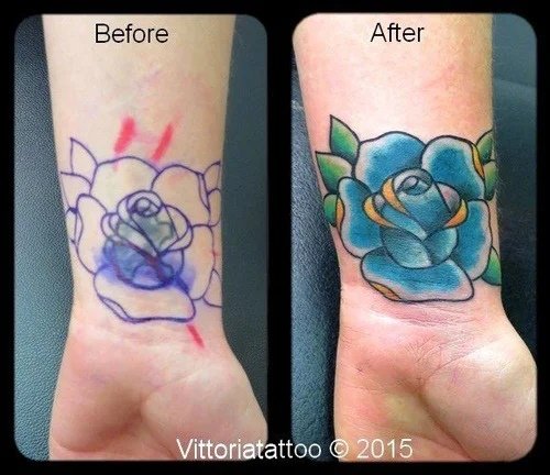 Chez VittoriaTattoo Shop Aubusson, je vous aide à donner une seconde vie à vos anciens tatouages grâce à l’art du cover-up (recouvrement).